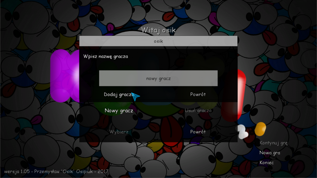 • możliwość przełączenia gracza – wcześniej nazwa gracza była brana z nazwy użytkownika w systemie