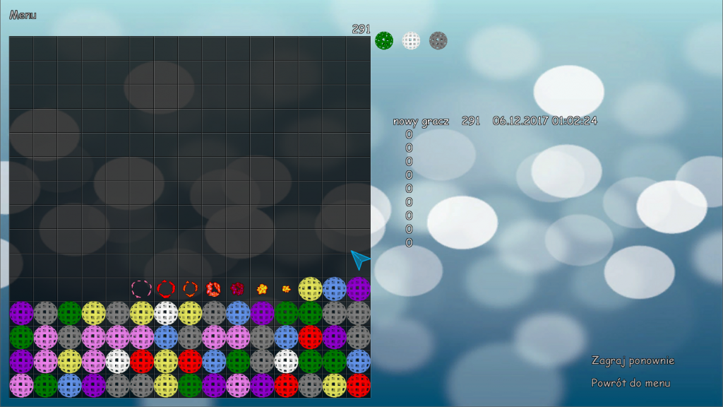 • wyświetlanie kolorów kulek, które zostaną dodane przy następnym ruchu,
